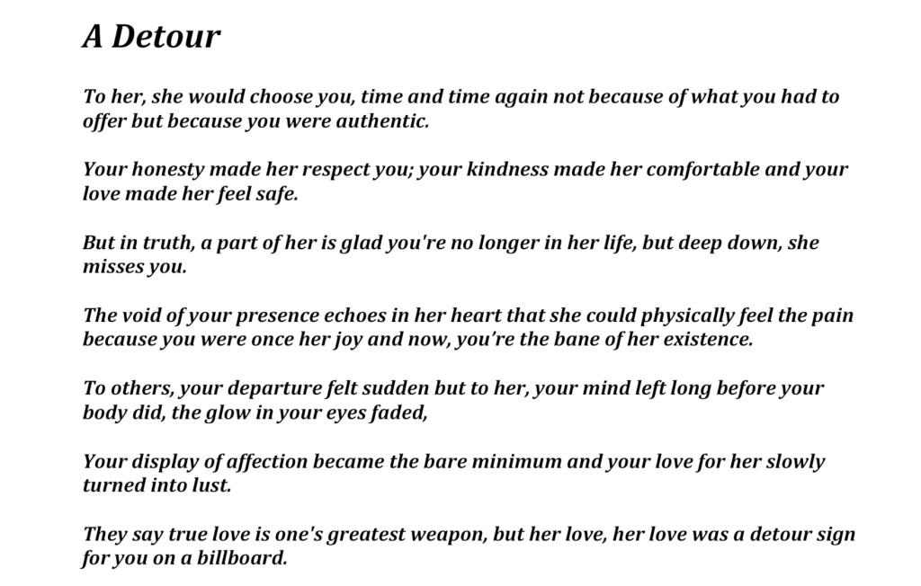 PERSON Poem: A DETOUR, by Amanda Afeli