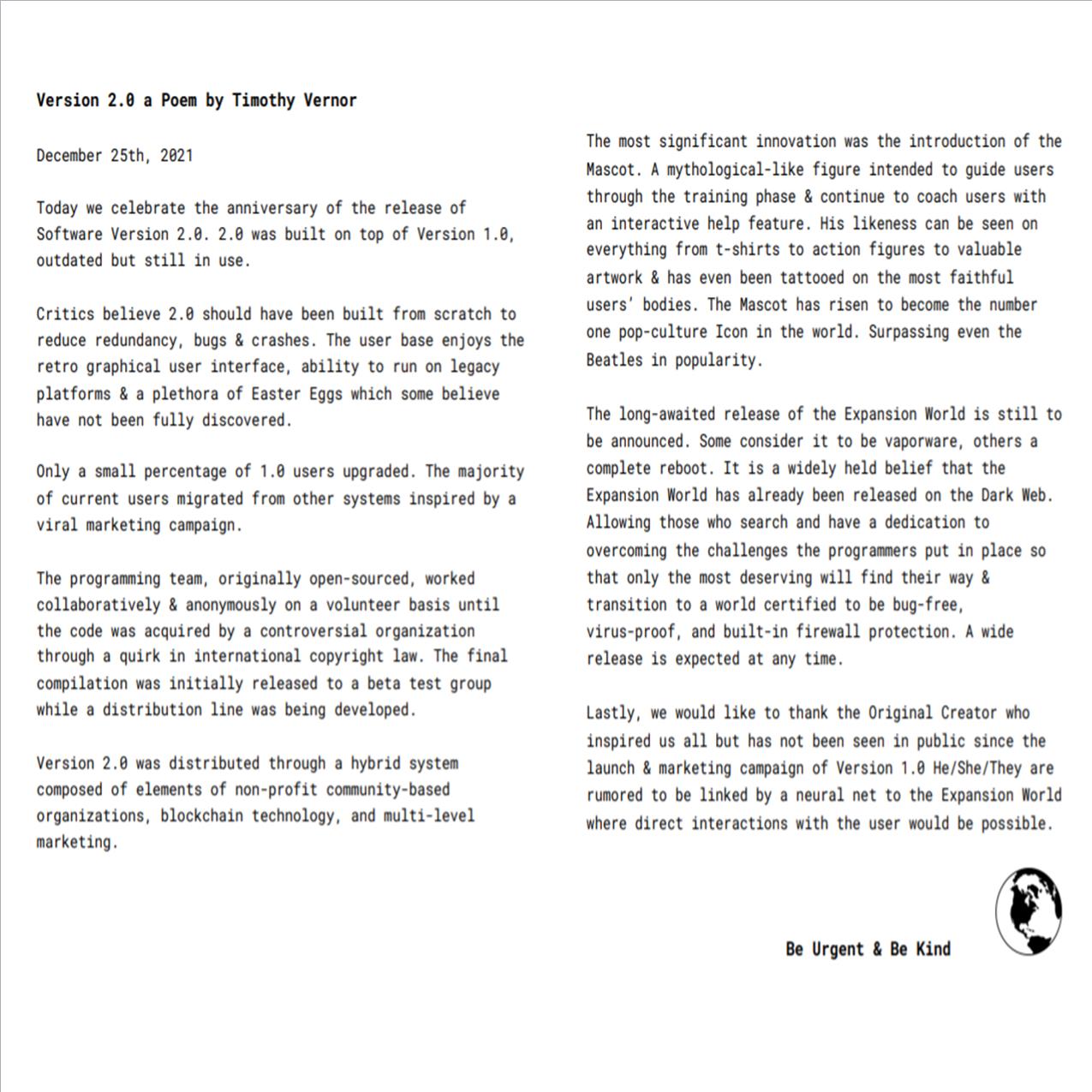 Read Poem: Version 2.0., by Timothy Vernor